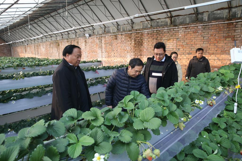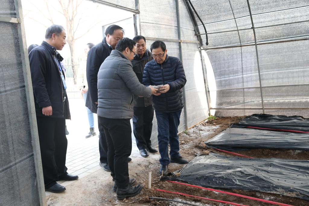 随后,康振生院士在王周锁一行陪同下,参观了大学生劳动教育基地,对学校基地建设给予肯定,并对智能温室北方草莓产业研发中心、秦岭食用菌产业研发中心进行现场工作指导。