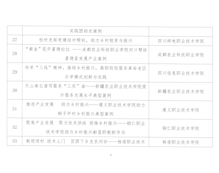 1月27日,全国职业院校巩固拓展脱贫攻坚成果同乡村振兴有效衔接优秀案例遴选结果公布,经专家对全国报送的113个案例进行遴选,共评选出40个优秀案例。我校推送的《教授进村 技术上门 百团下乡支农问诊——杨凌职业技术学院“百名教授进百村”乡村振兴大调研典型案例”》获优秀案例。