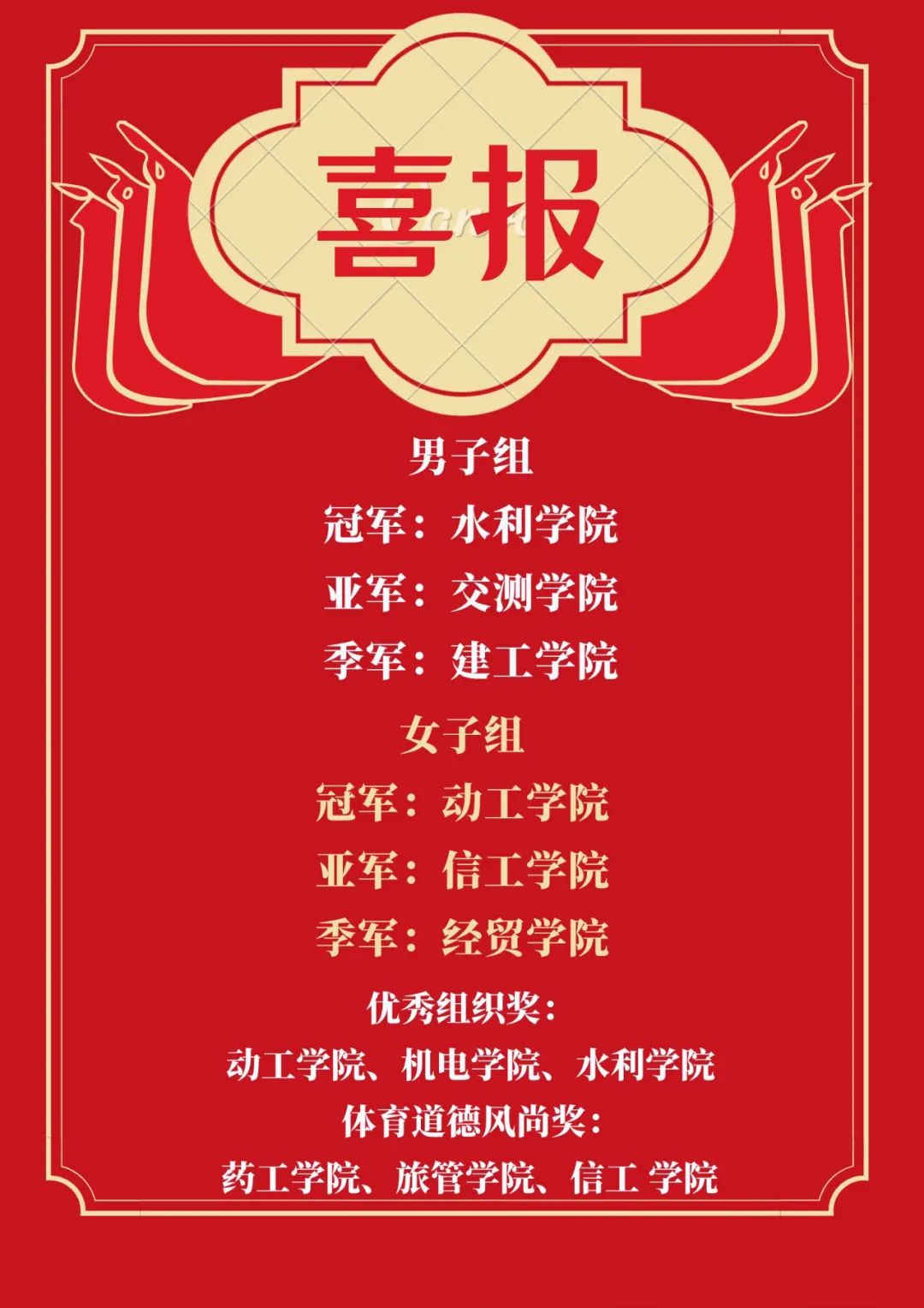 本次比赛各学院共派出19支男女代表队300余名运动员教练参赛比赛分小组赛和淘汰赛、教工联队表演赛等,50多场比赛。女子组决赛中,动物工程学院以46:18大比分战胜信息工程学院夺冠。男子组决赛中,水利工程学院以57:50比分战胜交通与测绘学院夺冠。