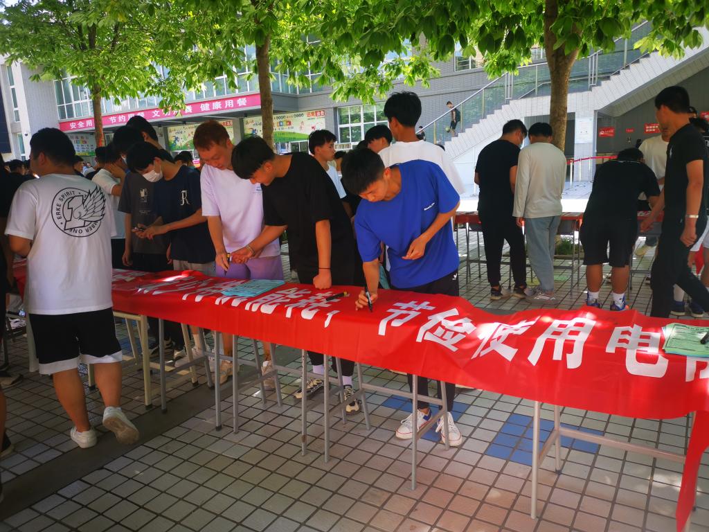 6月15日上午,学校后勤保障处、学生处、生态环境工程学院、旅游管理学院在三校区组织开展了“绿色低碳,节能先行”节能宣传周暨全国低碳日“节能减排我承诺”师生签名活动,倡导师生争当节能使者,共创生态文明。