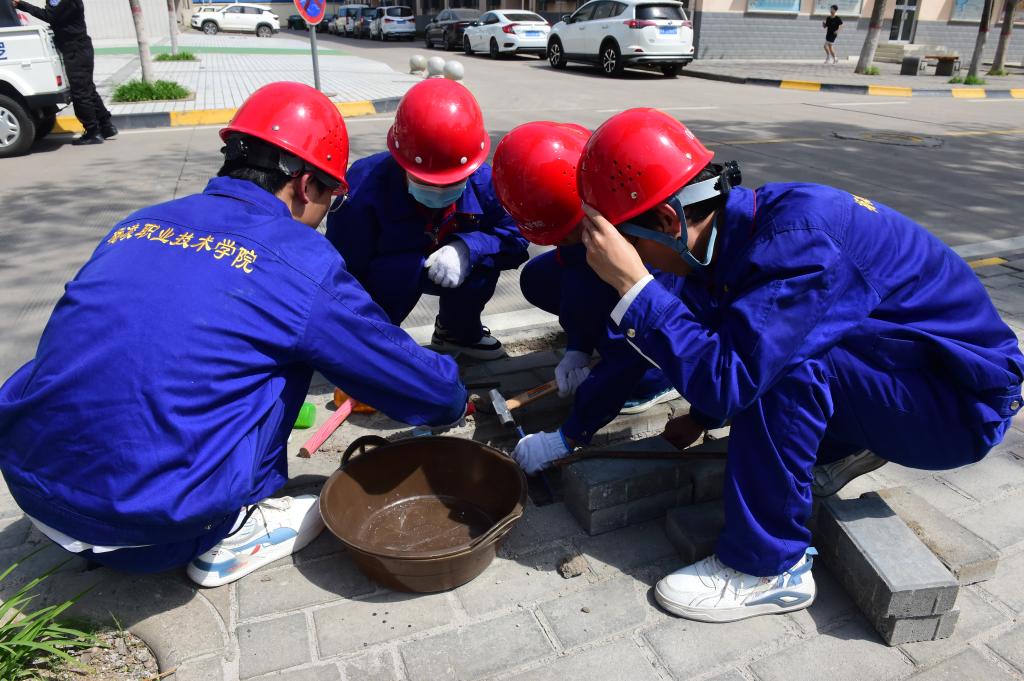 活动前期,学院师生认真检查了整个南校区道路地面,发现并标注多处地砖破损问题,采购了修补材料。修缮过程中,学生们结合带队老师示范的施工要点进行修补,排除安全隐患。在保证地砖平整度和固定性的同时,还根据环境特点和使用需求,调整了地砖的颜色和样式,使校园的整体美感更加协调。