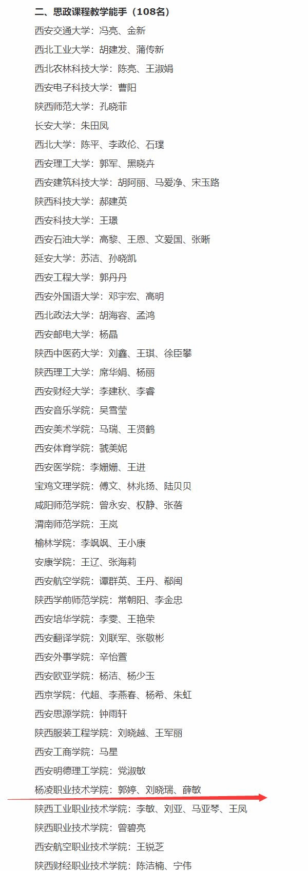 4月13日,2022年度陕西高校思政课教师“大练兵”省级现场展示获奖名单公布,我校马克思主义学院教师赵蓉获“思政课程教学标兵”称号,郭婷、刘晓瑞、薛敏获“思政课程教学能手”称号。