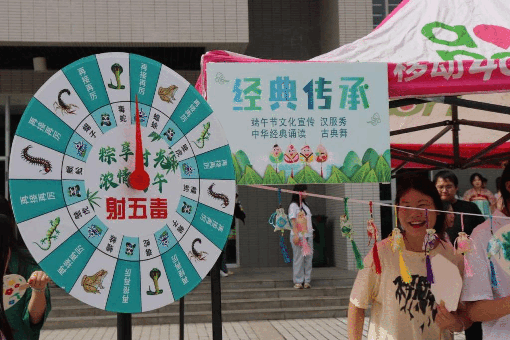 6月19日,旅游与管理学院在北校区组织开展“妙趣端午,与粽不同”端午节活动。活动包括发放粽子、粽子运输机、射五毒、粽子滚滚来、悬挂的粽子、粽子保龄球、粽子套圈、艾草香囊DIY和旱地龙舟等,让师生在活动中感受传统文化魅力。