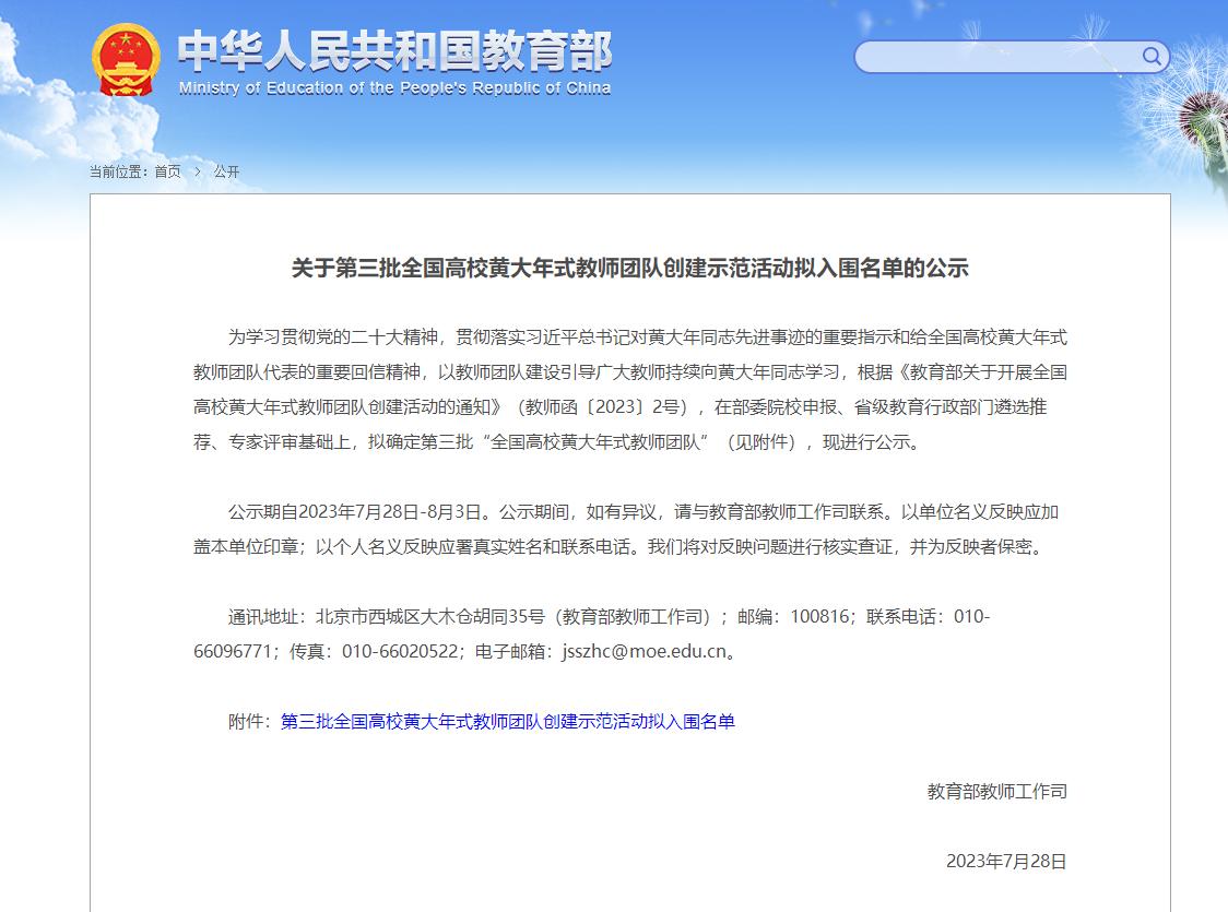 ▲7月28日,教育部公布了《关于第三批全国高校黄大年式教师团队创建示范活动拟入围名单的公示》,我校畜牧兽医教师团队入选第三批全国高校黄大年式教师团队;陕西省教育厅发布了《关于公布第二批陕西省高校黄大年式教师团队的通知》,我校现代农业技术教师团队入选第二批陕西省黄大年式教师团队。