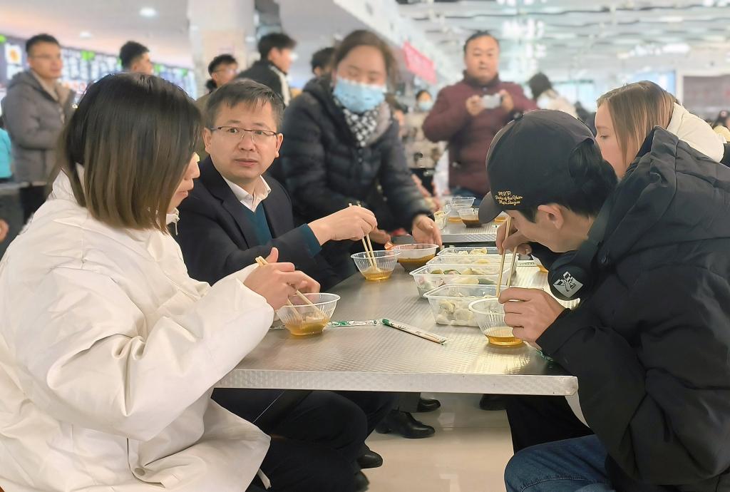 副校长张朝晖与学生一起吃饺子