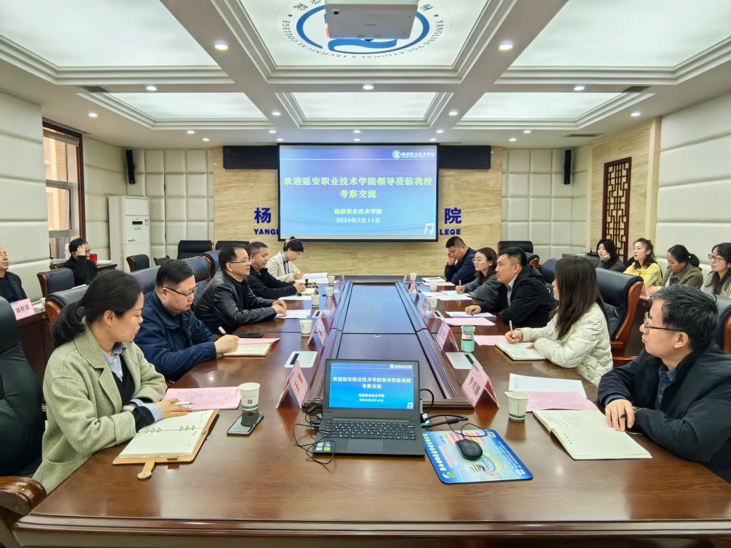 3月14日上午,延安职业技术学院公共课部负责人、骨干教师一行16人来校考察交流。