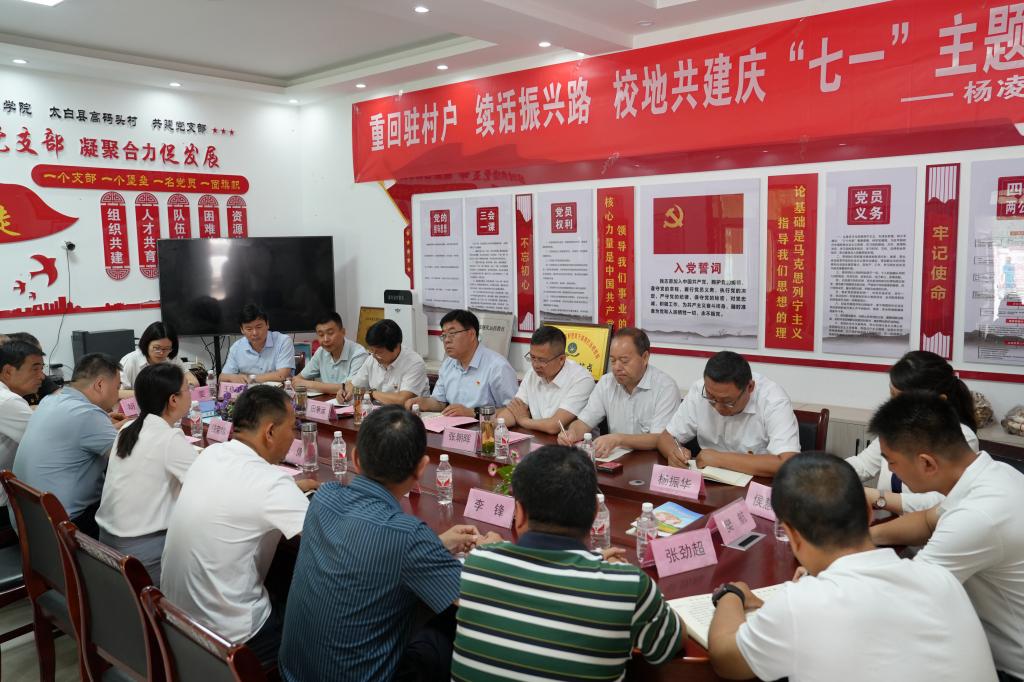 6月28日,党委副书记刘瑞明、副校长张朝晖带队赴太白县鹦鸽镇高码头村,围绕“重回驻村户  续话振兴路”主题,开展同上纪律课、回温包抓情、走进产业棚、共谋振兴路等校地共建庆“七一”主题党日活动。