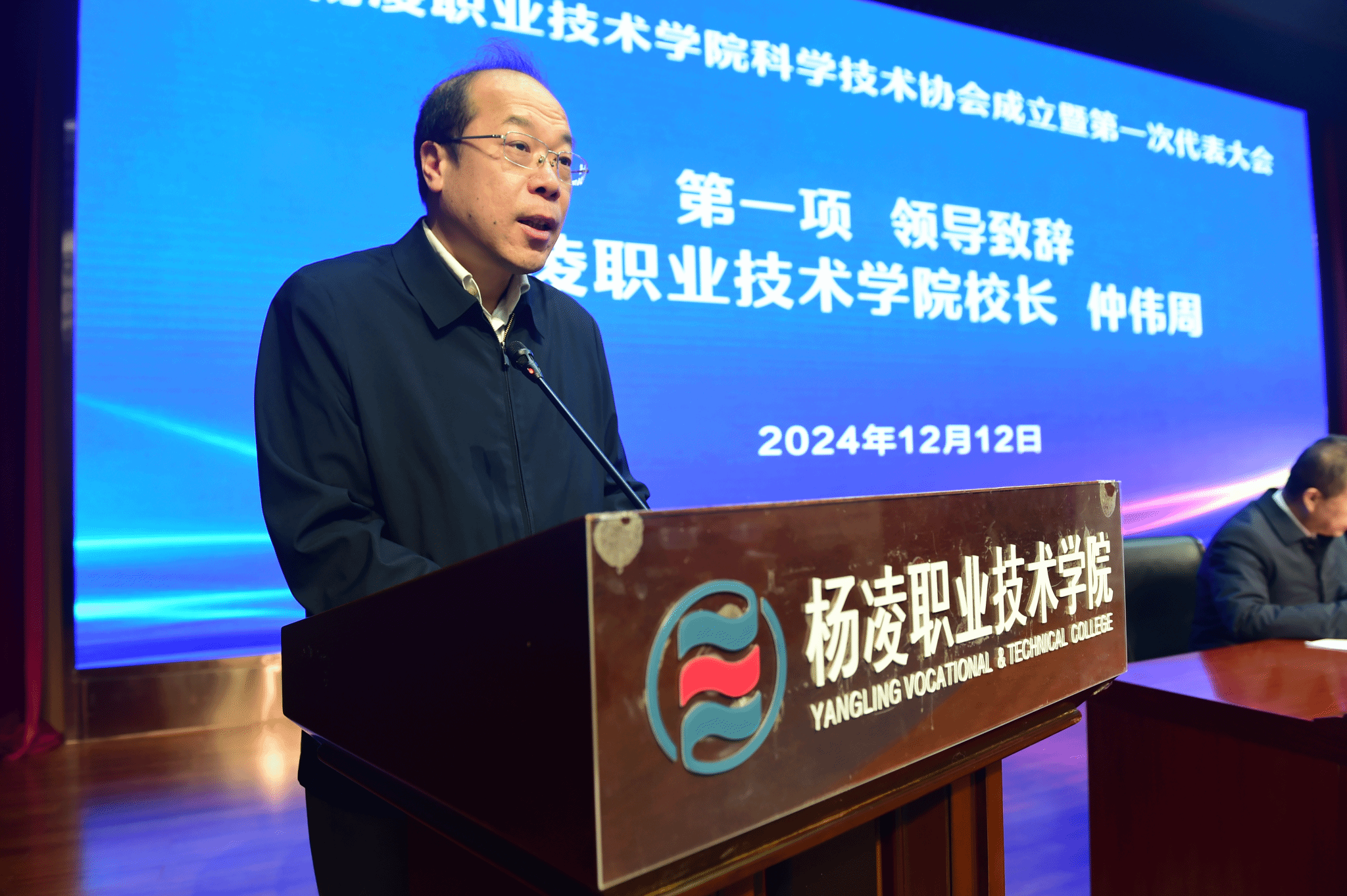 仲伟周在致辞中对省科学技术协会长期以来对学校科技工作的关心、支持和帮助表示衷心的感谢。他表示,校科学技术协会的成立是学校响应国家创新驱动发展战略和推动学校科技创新工作的重要举措,是学校高水平专业建设和服务区域经济社会高质量发展的强有力支撑。希望科学技术协会要提高政治站位,切实把牢政治方向;要聚焦科技创新,服务学校发展大局;要发挥科教优势,提升社会服务能级;要立足新起点、担当新使命、把握新机遇、展现新作为,不断开创学校科技事业发展新局面,为“中国特色、世界一流”职业大学建设贡献智慧力量,为陕西省科技事业创新发展、推动高水平科技自立自强作出新的更大贡献。