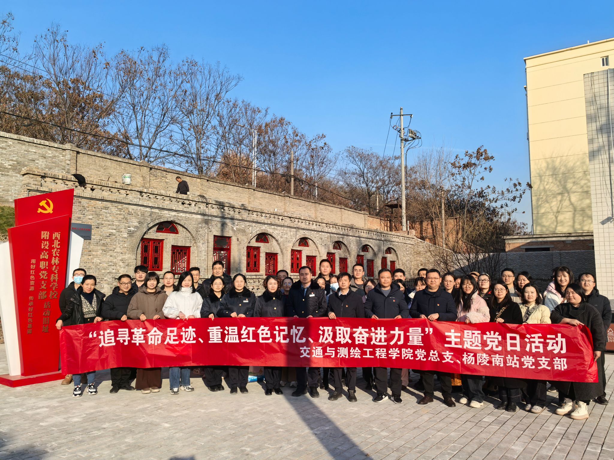 为传承红色基因和革命精神,加强党员党性修养,12月16日下午,交通与测绘工程学院党总支联合杨陵南站党支部,组织40余名党员到我校西北农林专科学校附设高职党支部活动旧址开展“追寻革命足迹、重温红色记忆、汲取奋进力量”主题党日活动。