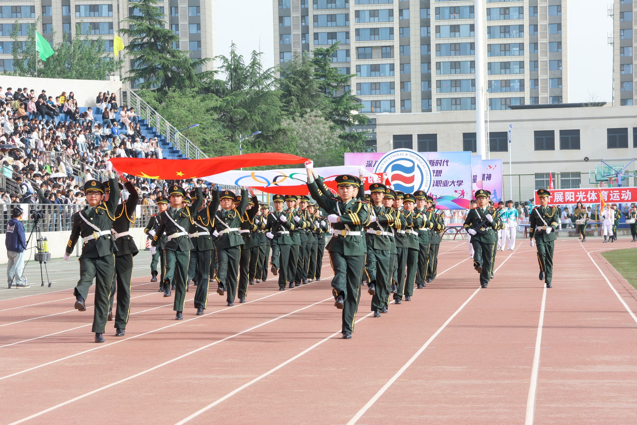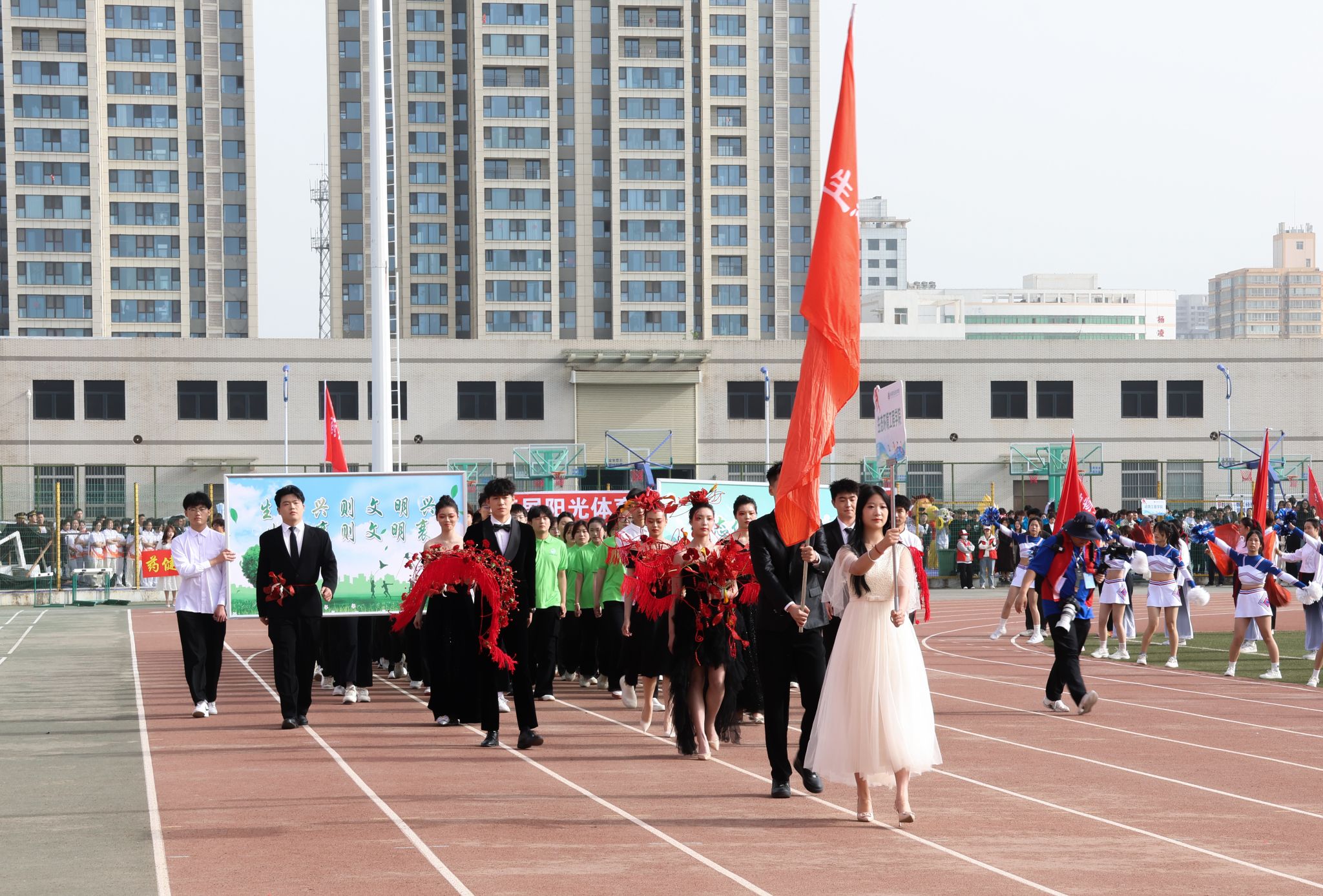 4月22日上午8点30分,伴随着气势磅礴的《运动员进行曲》,国旗护卫队、军鼓队、腰鼓方阵、花束方阵、扇子方阵、彩旗林队、裁判员方阵和各二级学院代表队依次入场。国旗飘扬,鼓声激昂,鼓点铿锵,青年学子精神抖擞、意气风发。扇子舞灵动飘逸,花束方阵尽显青春活力,广播体操表演动作规范、整齐划一。他们精神饱满、朝气蓬勃,展现着杨职人奋斗不息的深厚底蕴与敢为人先、团结协作、追求卓越的体育精神。