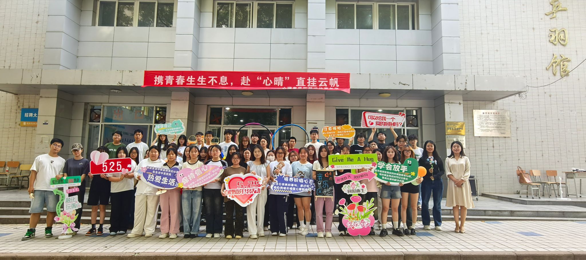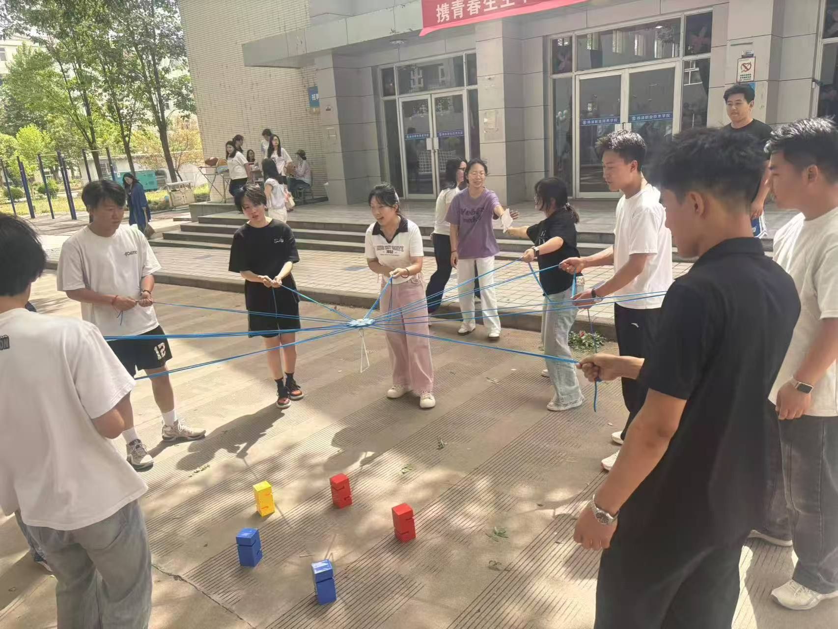 为深入普及心理健康知识、提升师生心理保健意识,全力营造阳光向上的校园心理生态。5月22日下午,我校“携青春生生不息 赴‘心晴’直挂云帆”5·25心理素质拓展运动嘉年华活动在三校区同步启动。本次活动由校大学生心理健康教育与咨询中心主办,水利工程学院、信息工程学院、生物工程学院、旅游与管理学院承办。副校长张朝晖出席活动。学工部负责人,各二级学院负责人,学工办主任,辅导员老师及三校区700余名师生共同参与活动。