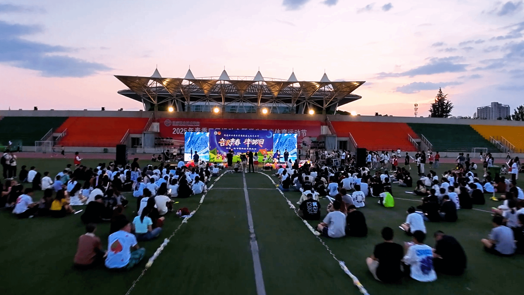 演出在毕业班学生吹奏的唢呐歌曲《敢问路在何方》中正式拉开帷幕。器乐团超燃乐队率先登场,鼓点响起,激昂的吉他旋律瞬间点燃全场。一首首耳熟能详的摇滚歌曲,让大家仿佛置身于热血沸腾的青春战场。民谣的浅吟低唱,又诉说着毕业季的不舍与眷恋。现场气氛热烈非凡,舞蹈表演活力四射,台下观众跟随着节奏挥舞双手、齐声合唱。整个音乐节持续了两个半小时,在乐队演唱《鲜花》中落下帷幕。