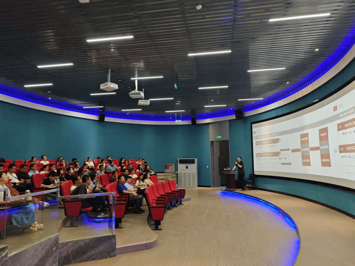 为推动人工智能深度赋能职业教育专业(群)建设,6月19日下午,学校举办人工智能+专业(群)全场景融合专题培训会。中教云智数字科技有限公司售前工程师张伟民以《生成式人工智能与AI+职业教育新生态》为题作主题报告。教务处负责人、学校各专业带头人、教研室主任等80余人参加培训。