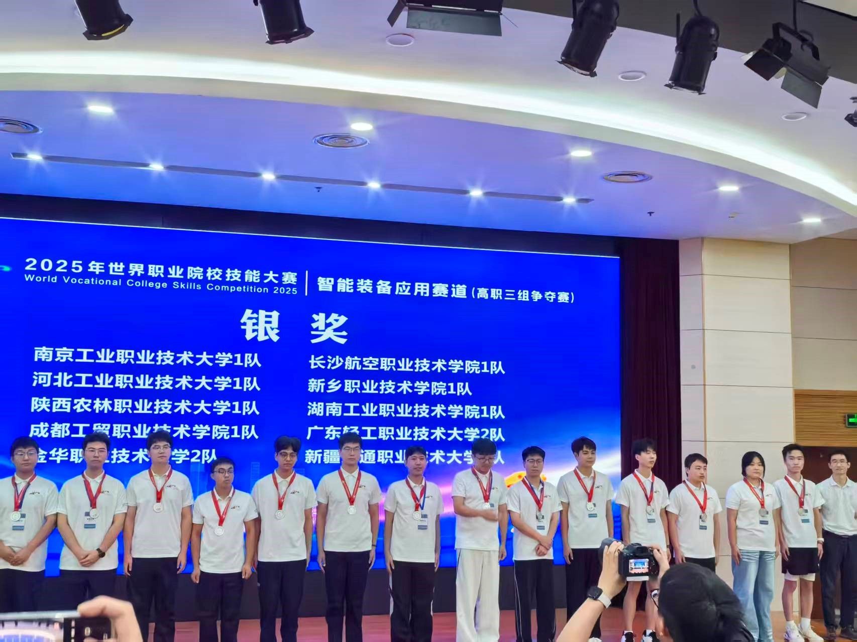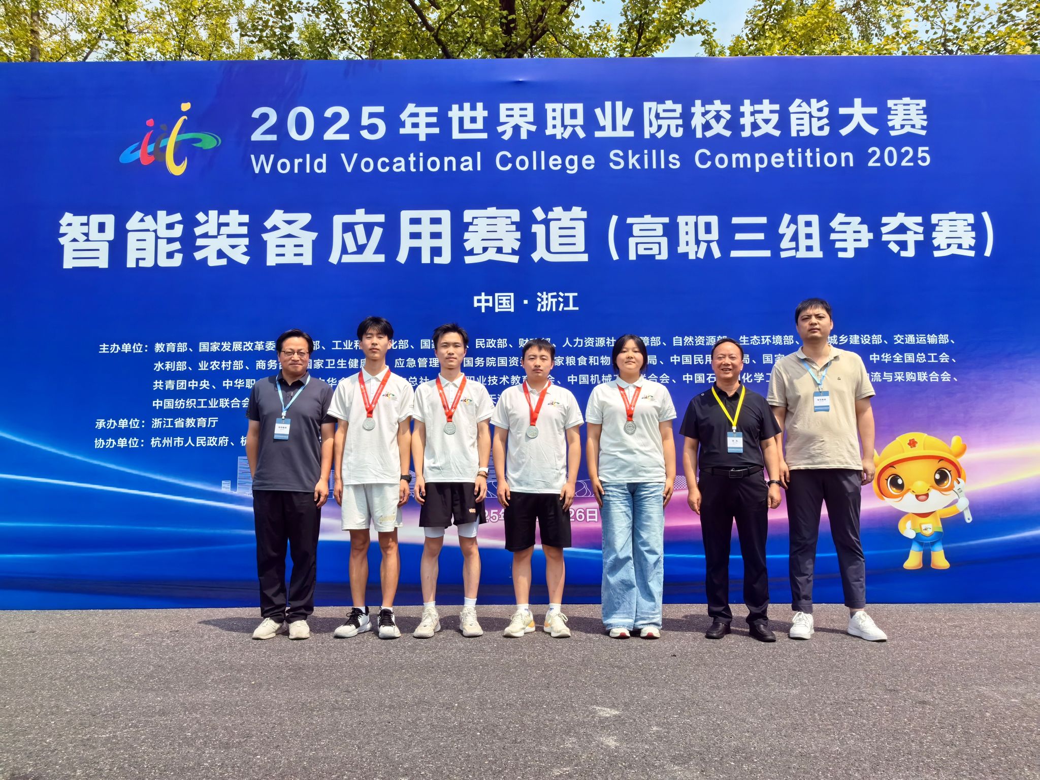 8月20日至26日,2025年世界职业院校技能大赛总决赛争夺赛智能装备应用赛道比赛在杭州职业技术大学、浙江机电职业技术大学、嘉兴职业技术学院成功举办,共有来自全国省、自治区、直辖市的201支队伍参赛。我校机电工程学院由教师李培东、何国荣指导,郑思远、王沙龙、杨柯怡、王佳晨组成的学生团队,凭借扎实的专业技能,荣获银奖。
