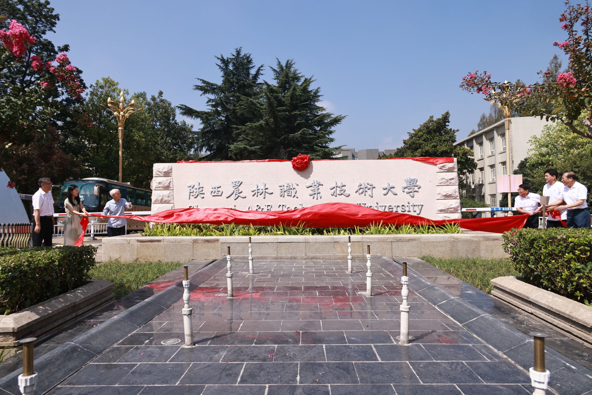 西北农林科技大学党委书记黄思光,杨凌示范区党工委书记史高领,省委教育工委委员、省教育厅副厅长吴振磊,杨凌示范区党工委委员、杨陵区委书记李函,杨陵区委副书记、区长李朝喜;学校党委书记韩明军,校长仲伟周,原党委书记王周锁,党委副书记、纪委书记王勇胜,副校长祝战斌、蒋平江、胡俊鹏等出席揭牌仪式。省教育厅、杨凌示范区、西北农林科技大学、杨陵区有关领导,学校校友及师生代表230余人,共同见证学校跨越发展的历史性时刻。揭牌仪式由学校党委副书记刘瑞明主持。