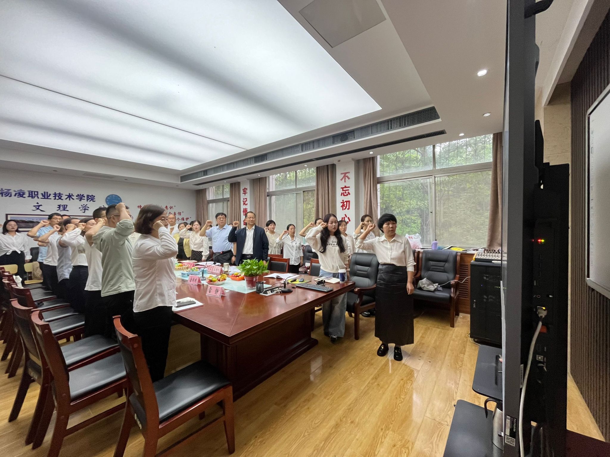 会议在庄严的国歌声中拉开帷幕,全体教师庄严宣誓,铿锵誓言彰显了投身教育事业的坚定信念。与会教师共同观看了《弘扬教育家精神》宣传片,深入了解“最美教师”邓滢教授扎根西部教育三十载的感人事迹,以及叶嘉莹先生“以诗传灯”的文化传承精神。“光荣从教30年”教师和中青年教师代表,分别围绕坚守教育初心、新时代教师角色转型、课程思政创新实践等主题交流发言。