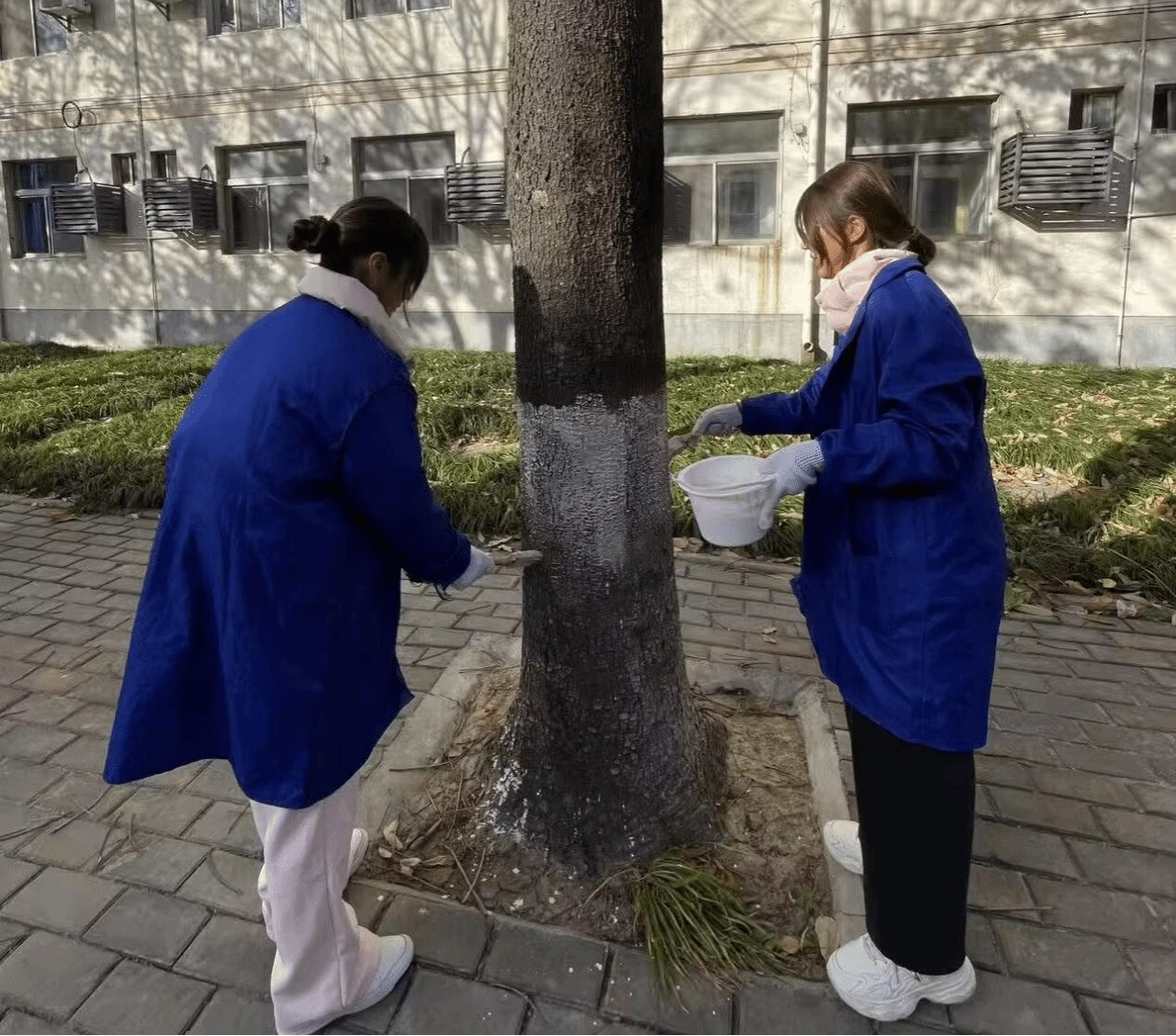 活动开展前,公司相关负责人从树木养护与生态保护的角度讲授了冬季树木病虫害防治知识和树木涂白技巧。同学们认真聆听、细心记录。实践环节,同学们将调好的环保防护漆均匀地涂刷在树干上,校园道路两旁的树木穿上了洁白的“防护衣”,成为校园中一道充满温情的风景线。