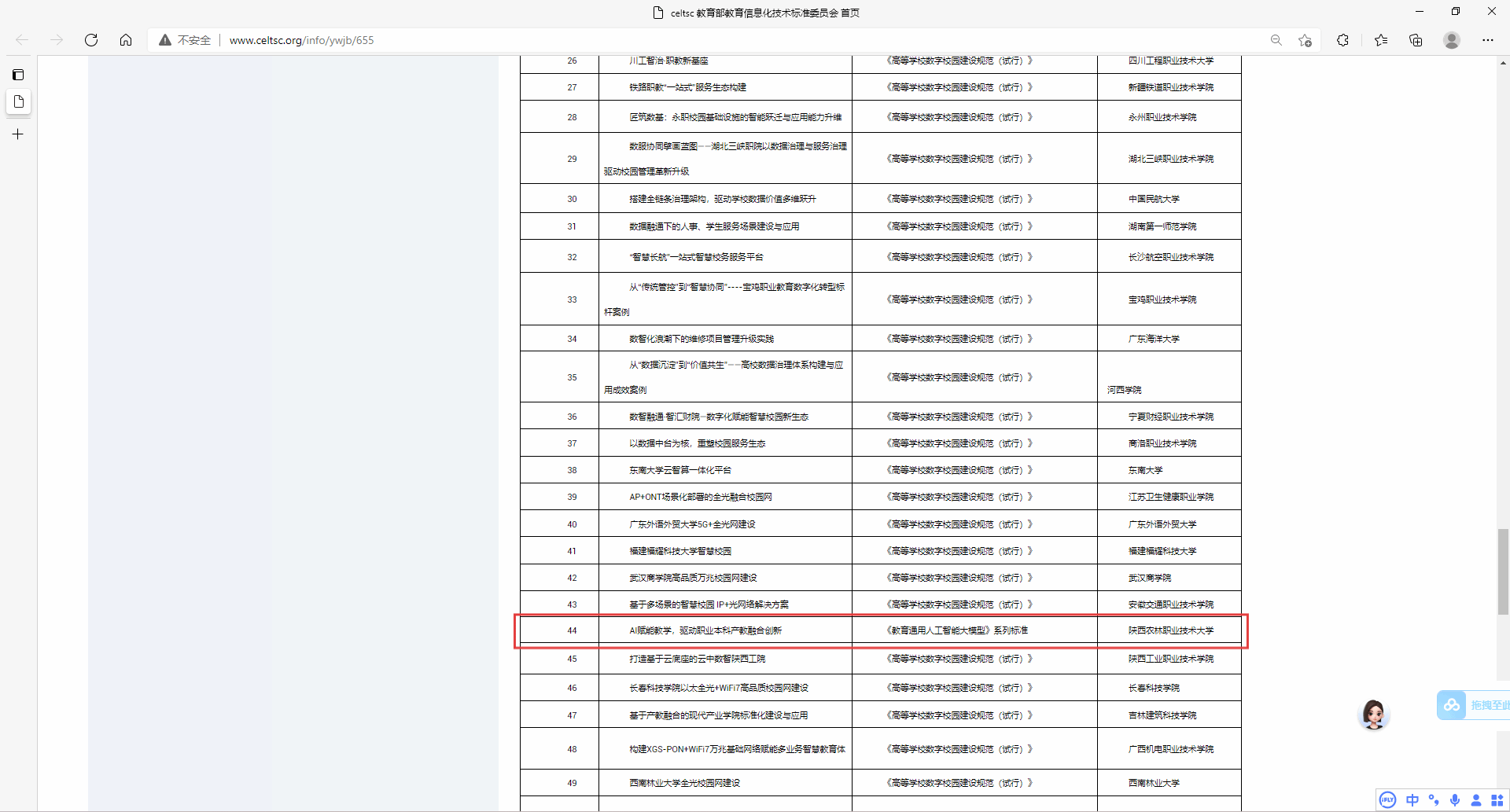 近日,全国信息技术标准化技术委员会教育技术分技术委员会(CELTSC)公布了2025年CELTSC标准应用典型案例名单,我校信息化建设与管理处申报的《AI赋能教学,驱动职业本科产教融合创新》案例成功入选。