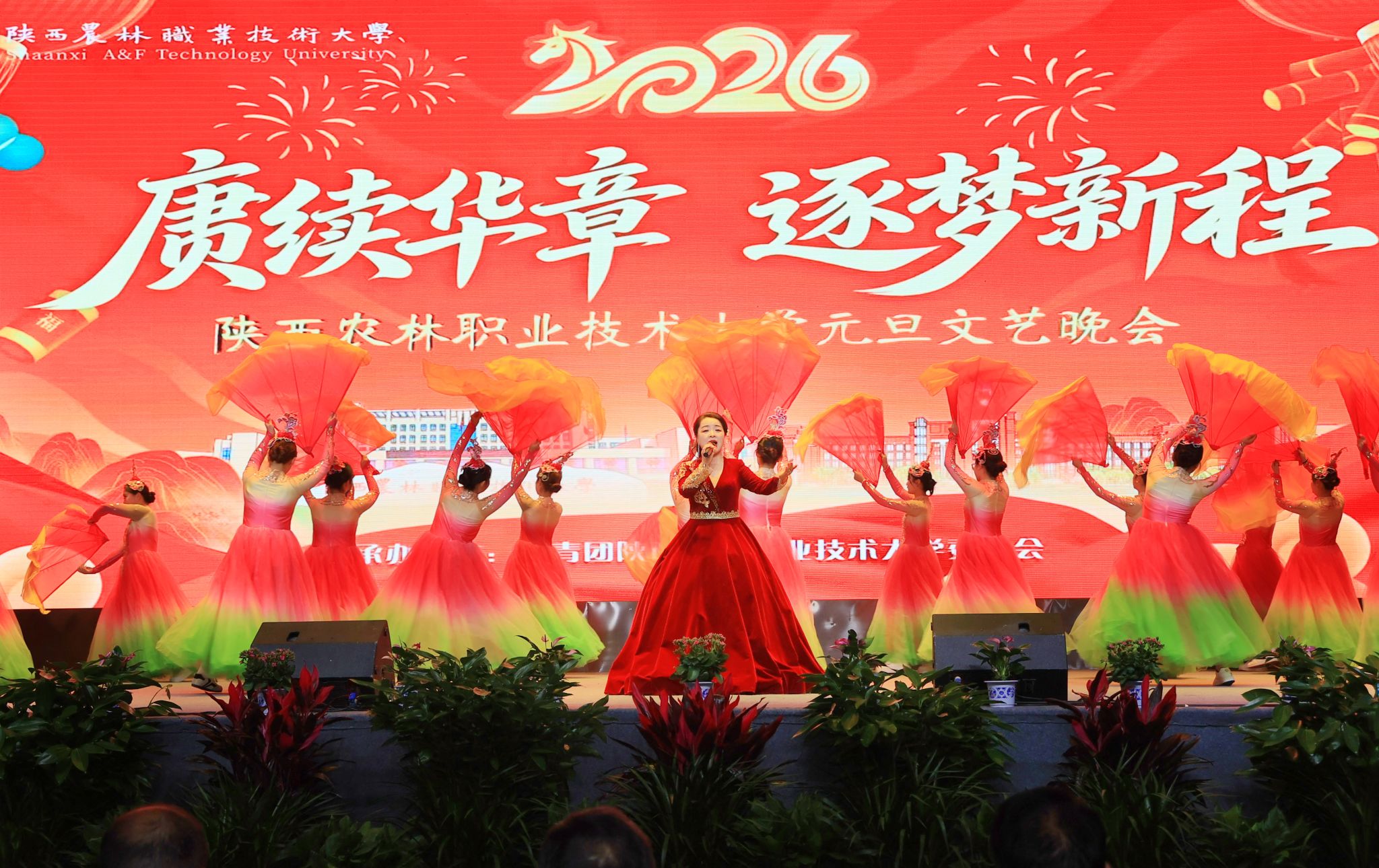 晚会节目形式多元、内容精彩纷呈,涵盖歌舞、朗诵、武术等多种艺术表现形式。开场环节,大学生艺术团以一支舞蹈《春节序曲》惊艳亮相,灵动优美的舞姿与欢快激昂的旋律完美交融,瞬间点燃全场热烈氛围。古典舞《市景欢歌》《清平乐》尽显雅致古韵,将传统美学的独特韵味娓娓道来;民族舞《弥渡山歌》《达布啊谐》充分展现出同学们对少数民族舞蹈艺术的深刻理解与扎实功底;歌曲《美丽时光》《阳光路上》《幸福永远》《我们都是追梦人》中,教师们以醇厚动人的唱功与优美的舞蹈相得益彰,尽显师者风采;朗诵节目《闪耀吧,青春的火光》情感炽烈、气势磅礴,学生们以铿锵有力的语调、饱满真挚的情感,将青春的热血与激情、理想与担当娓娓道来;武术表演刚劲有力,气势如虹,一招一式间尽显中华传统文化的磅礴魅力;合唱《上春山》节奏明快、青春洋溢,传递出陕农大学子蓬勃向上的精神力量。