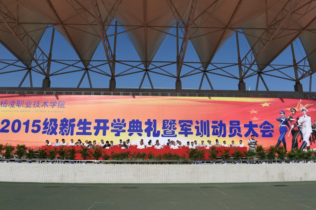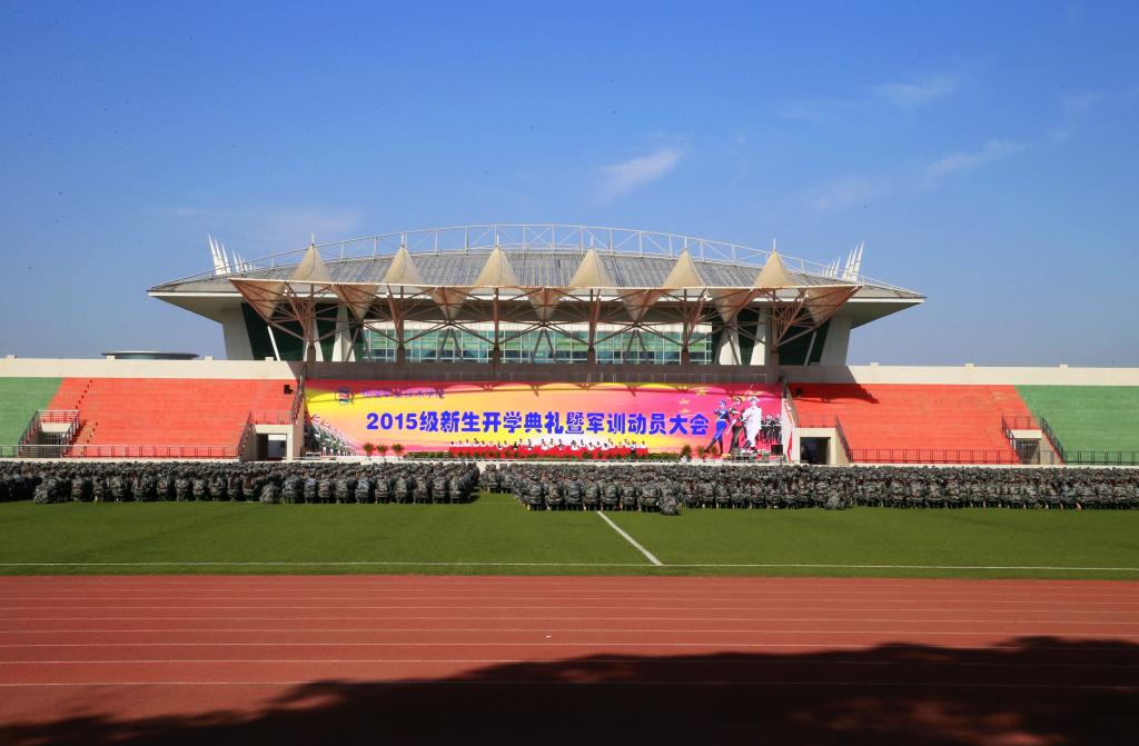 9月6日上午,我院2015级新生开学典礼暨军训动员大会在南校区田径运动场举行。学院党委书记赵曼、院长王周锁,军训部队首长杨俊生等出席大会。各分院、处室负责人,教师代表和2015级全体新生共7000多人参加了大会。