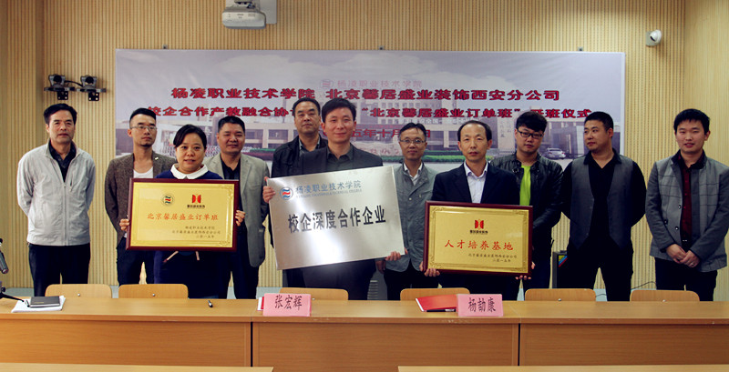 冠名仪式上,企业在2013级室内设计专业设立专项奖学金3万,并成立了“北京馨居盛业订单班”。同时,双方还签署了校企合作产教融合协议,我院向北京馨居盛业装饰西安分公司授予了校企深度合作牌匾,公司向我院授予了北京馨居盛业人才培养基地及北京馨居盛业订单班牌匾。学生处负责人向北京馨居盛业装饰西安分公4名设计师颁发了兼职教师聘任书,公司向我院5名教师颁发了高级顾问聘任书。