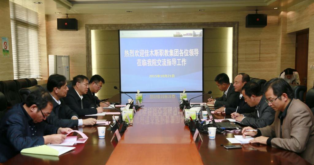 10 月 21 日 ,佳木斯职教集团党委副书记、管委会副主任,佳木斯职业学院党委书记刘建强一行4人来院考察交流。党委书记赵曼会见来访客人并举行了座谈。副院长张永良,党政办公室、教务处等相关部门负责人参加座谈。