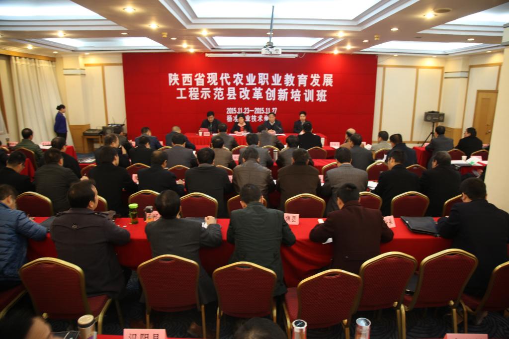 11月23日,由陕西省教育厅主办,我院承办的陕西省现代农业职业教育发展工程示范县改革创新培训班在杨凌示范区鑫诚田园山庄开班。陕西省教育厅职成处副处长李春娥出席并讲话,学院院长王周锁、来自全省各市区的80名教育局长及职成教育科长参加了开班仪式。学院副院长王晓地主持开班仪式。