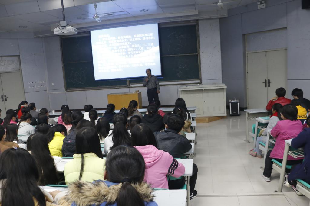 ——举办《中国文化的内涵》知识讲座。12月2日晚,分院邀请王红相老师为学生作题为《中国文化内涵》的知识讲座,分院金叶文学社、演讲与口才协会、诗歌朗诵会等五大社团的同学聆听了报告。王老师围绕中国的来历,中国的“中”,中国人的思维方式、处世策略四个方面进行了解读,内容博古论今、字字珠玑,并不时与同学们进行现场交流互动,在场的同学们纷纷表示深受启发,受益匪浅。最后,王老师还用“五常”——“仁、义、礼、智、信” 阐释了当代青年大学生如何树立合理人生目标和学业目标,怎样正确做人处事等。讲座将中国文化特别是传统文化的种子播散在青年学子心中,带给同学们心灵的启迪和美的感悟。