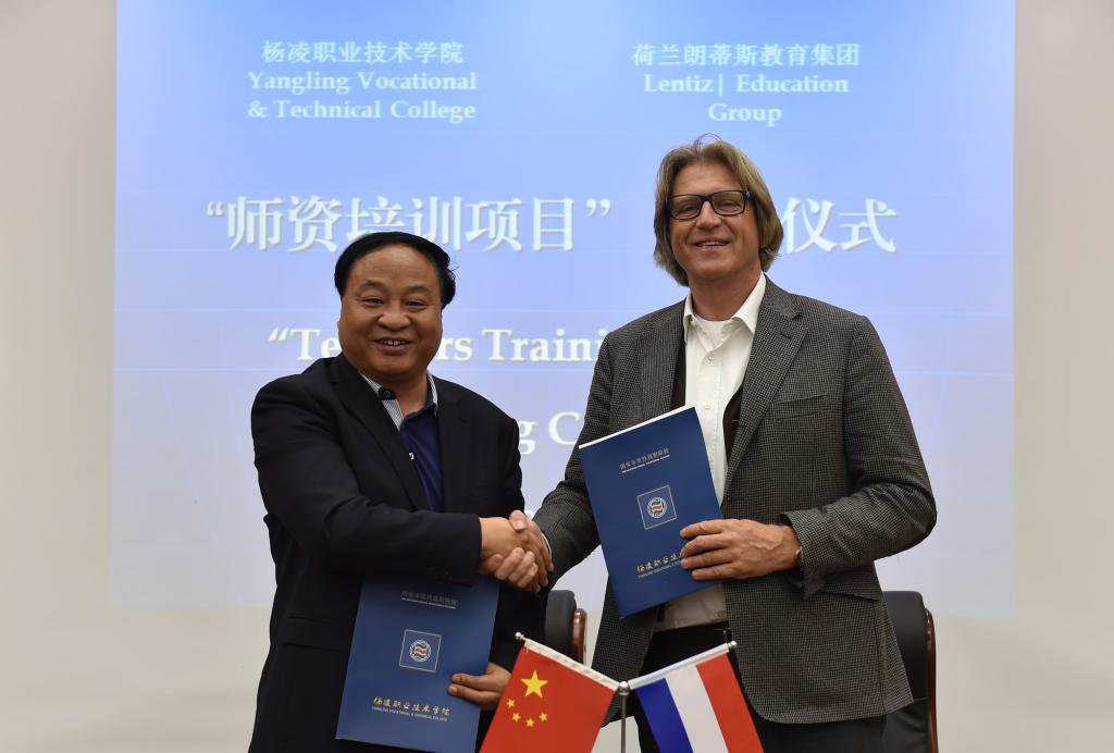 4月12日下午,双方举行了“师资培训项目”签约仪式。仪式上,王周锁与范康普博士签订了赴荷兰高级农业技术培训协议。副院长王晓地与荷方商讨了进一步扩大合作领域事宜,如未来可建设一个三方平台,邀请荷兰农业企业及院校与我院及杨凌示范区一起开展多类型、多层次的深度农业合作等。