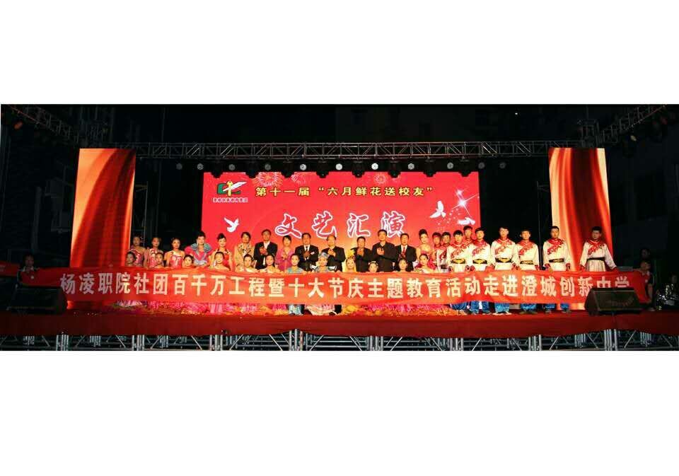 近日,我院大学生艺术团来到澄城县创新中学,为2016届高中生毕业典礼晚会献上精彩节目,赢得现场师生热烈掌声与喝彩,将晚会气氛推向高潮……