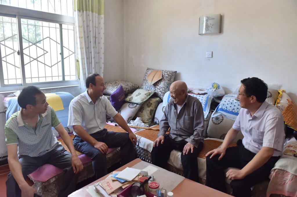 ,赵曼、任得元看望了学院在杨凌居住的离休干部雍家义、姚雷继、滕希贵、卢伟四位老同志。赵曼和这些老领导、老同志手拉手亲切交谈、热情寒暄,他详细询问老同志们的生活状况,并祝愿他们身体健康、生活幸福。赵曼表示,希望老同志关注学院发展,继续发挥余热。同时,他叮嘱相关部门一定要悉心安排好老人的生活,切实解决他们生活中的实际困难,让老人们安享幸福晚年。