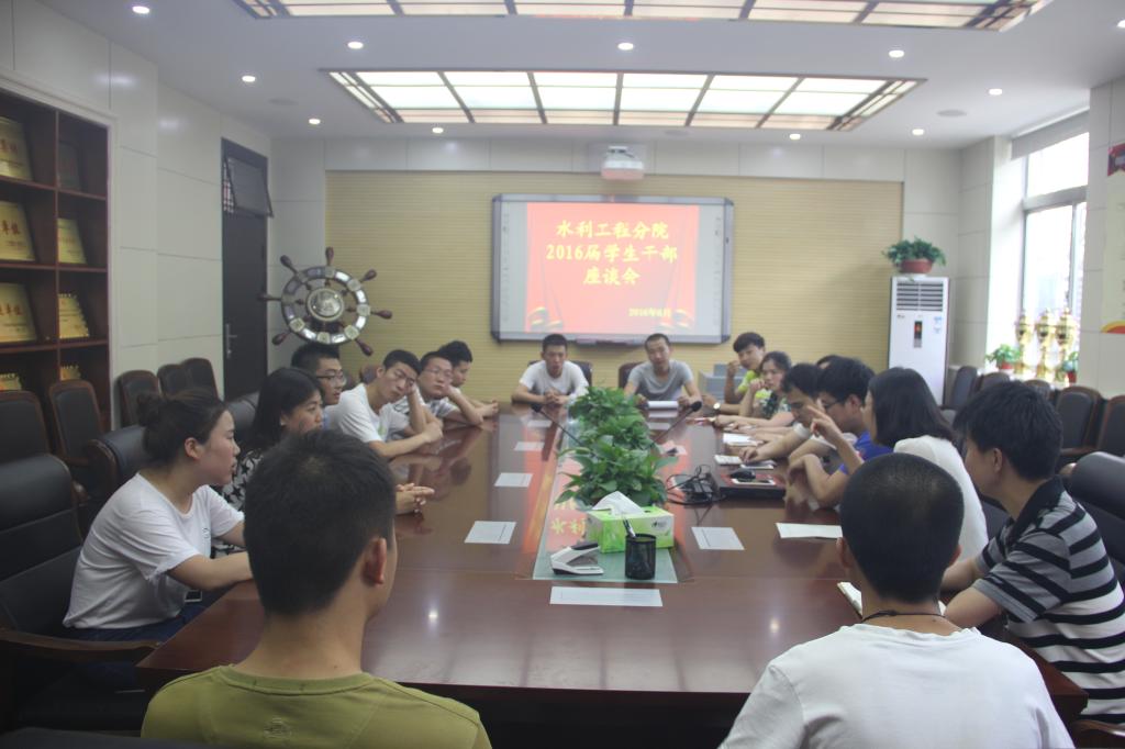 ,为了欢送大三年级学生干部,感谢他们三年来对水利工程分院的付出,学工办老师与全部学生干部在天润楼122举办了“新的旅程,不变的情谊——2016级学生干部座谈会”,大家畅谈了对母校的感谢和对未来的畅想。纷纷表示将来会不断完善发展自己,更好的为母校争光。