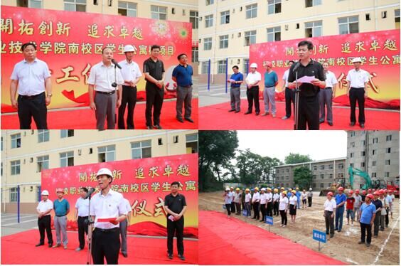奠基仪式上,张迪在讲话中指出,办学生欢迎,家长放心的学校是我们的长期追求。学院在深化教学改革,强化内涵建设,提升人才培养质量的同时,不断优化教学实训及生活条件,实施“四位一体”的人才培养改革,环境育人,管理育人也是我们提升学生素质的重要方面。“百年工程,质量第一”,公寓楼建设工程也是育人的重要内容和载体。