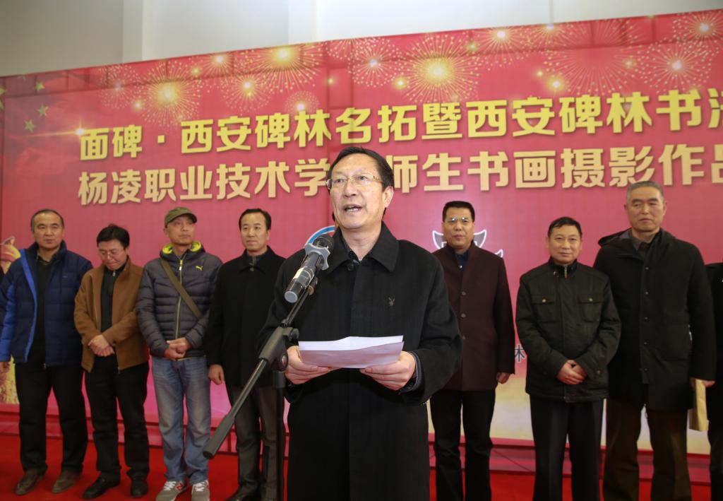 为贯彻落实习总书记在全国第十次文代会上的重要讲话精神,增强文化自信,进一步推动碑林传统文化走进高校活动,12月12日下午,由我院和西安碑林博物馆共同主办的《面碑•西安碑林名拓暨西安碑林书法家、杨凌职业技术学院师生书画摄影作品展》在我院一卡通中心开幕。
