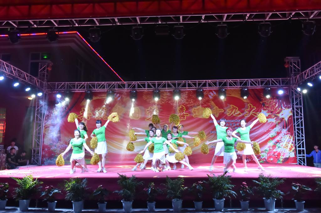 晚会在一支青春洋溢的《尽显青春》啦啦操中拉开序幕,节目更是精彩不断,有古典舞、街舞,也有印度舞;有演唱,也有诗歌朗诵。晚会间隙还开展了党建、扶贫、物业知识问答。表演者既有我院师生,也有大寨街道办的居民。整台晚会现场欢歌笑语,掌声不断,吸引了300多名群众到场观看,大家一起载歌载舞,喜迎十九大的召开。晚会充分展示了我院素质教育的成果, 展示了职业教育的特色与魅力。