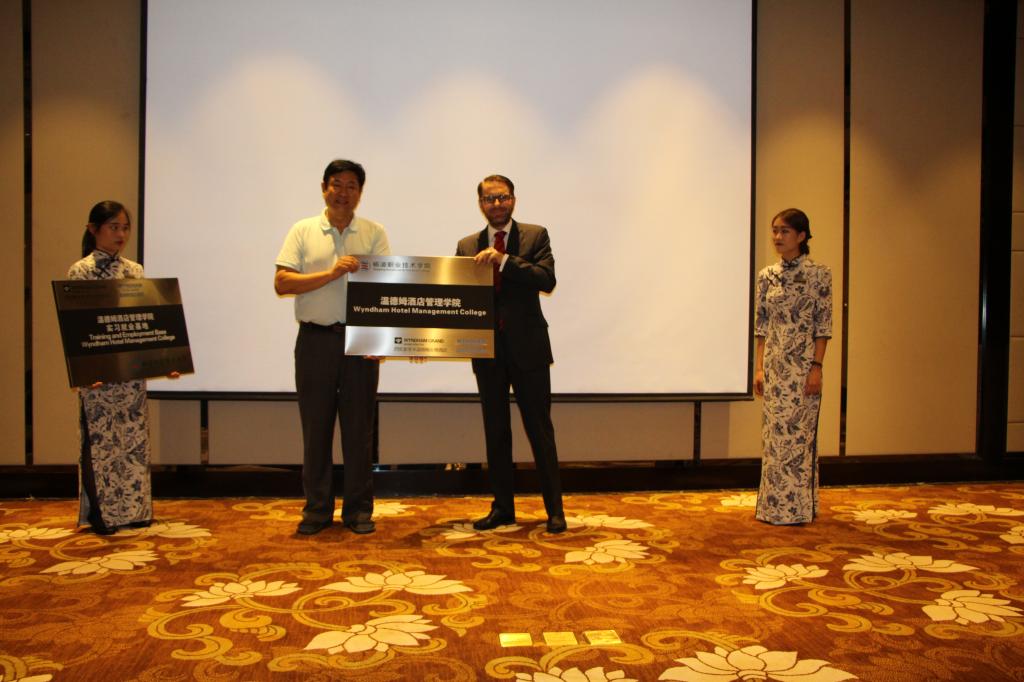 7月28日,旅游与管理分院与西安温德姆酒店校企合作签约暨温德姆酒店管理学院揭牌仪式在西安举行,这标志着我院与温德姆酒店管理集团的合作关系正式建立。副院长王晓地、党委委员拜存有及旅管分院全体教师、实习生参加了仪式。