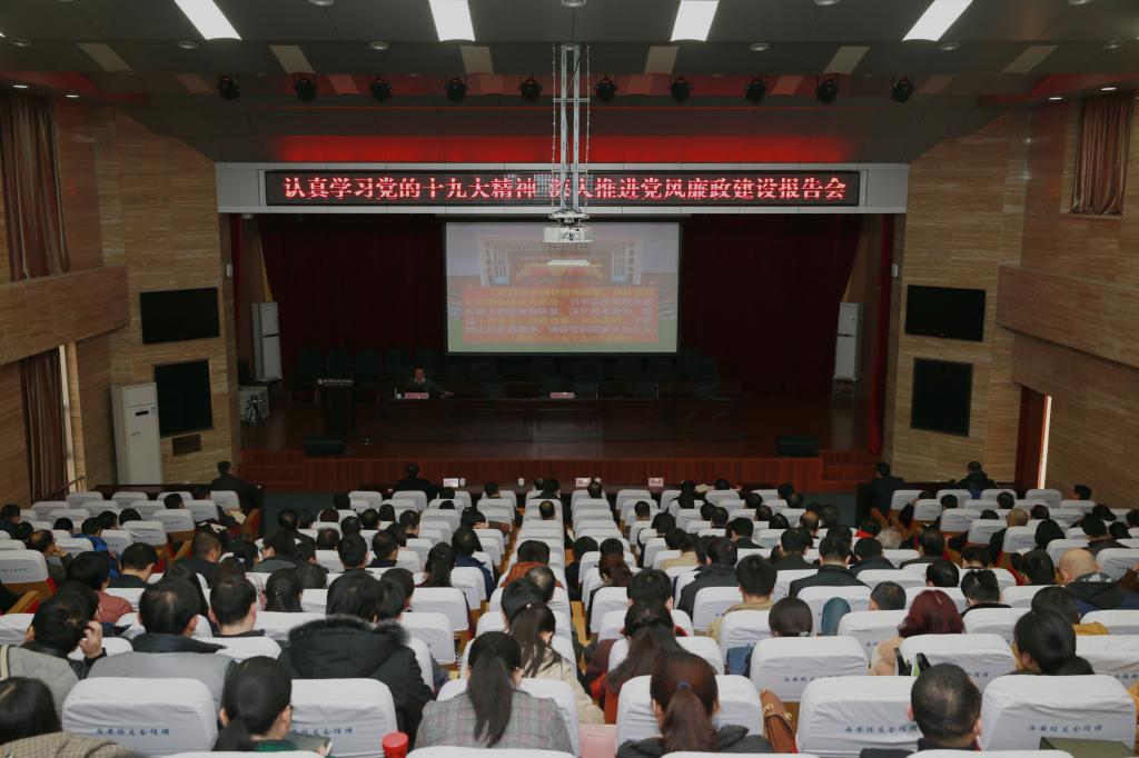 为认真贯彻落实党的十九大精神,持之以恒正风肃纪,让广大党员干部知敬畏、存戒惧、守底线,12月8日下午,我院在思辨堂举行党风廉政建设专题报告会,邀请省纪委监察厅原副厅级纪律检查员、监察专员马银录作了题为《学习十九大精神 做廉洁自律干部》的专题辅导。