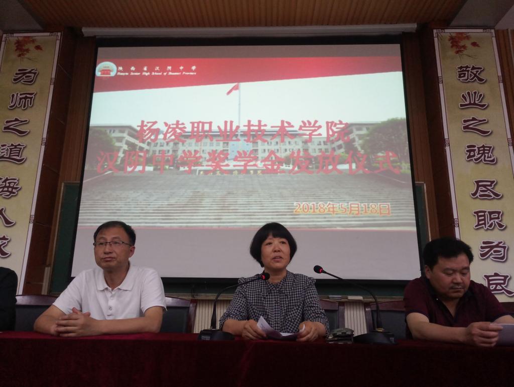 在两校的发放仪式上,刘粉莲首先介绍了杨凌示范区和我院的历史渊源、深厚的文化底蕴。她指出,近年来洋县二中和汉阴中学与我院联系紧密、合作愉快,取得了显著的成效,特别是2015年以来,两所中学每年都为我院输送学生,。这些学生入校以来,各方面表现都很好,多次荣获国家和学校各项奖励。她表示,今后学院将进一步加强与两所中学的合作交流,共同提高办学质量,培养好每个学生,为学生成长和成才奠定坚实的基础。