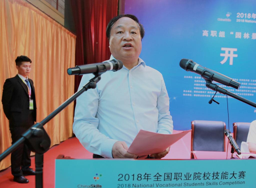 陕西分赛区组委会副主任、陕西省委高教工委委员、省教育厅副厅长、省高教局副局长刘建林致辞,并宣布2018年全国职业院校技能大赛(高职组)“园林景观设计与施工”赛项正式开赛。中央农业广播电视学校副校长田桂山,教育部行指委工作办公室常务副主任王国川,赛项执委会副主任、我院党委书记赵曼分别致辞。陕西分赛区组委会委员、赛项执委会副主任、我院院长王周锁主持开赛仪式。