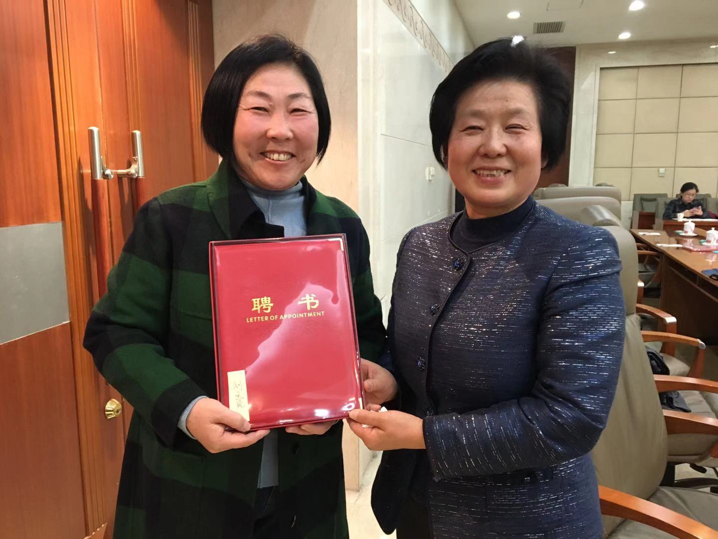 省人大常委会副主任朱静芝同志(右)为刘玉凤教授颁发聘书