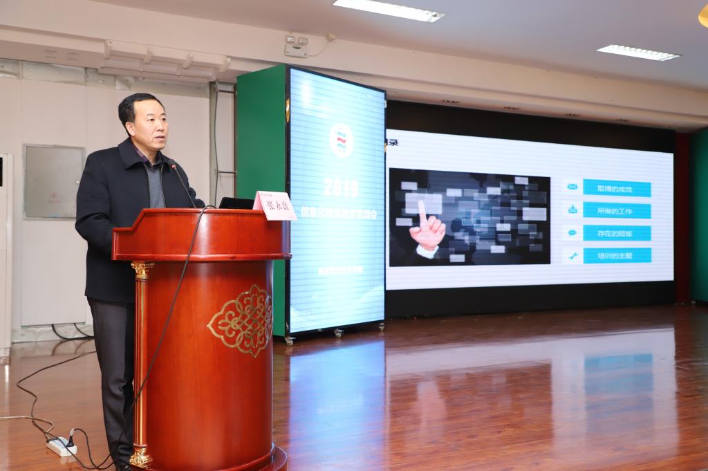 张永良通报了我院近年来线上线下混合教学建设应用的基本情况,指出信息化教育教学改革过程中存在的问题,下一个阶段广大教师在信息化教学方面努力的方向,安排部署了学院在2019年学院教育教学信息化的主要目标任务。