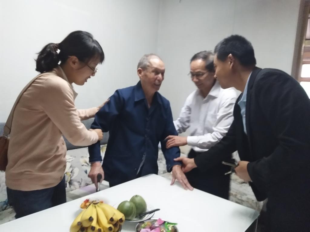 在雍家义老人家中,药化分院一行表达了学院对老干部的关怀,仔细询问了他的身体状况、生活情况等,送上了药化分院“联系离休干部青年志愿者服务组通讯录”和慰问品,并祝愿老人身体健康。
