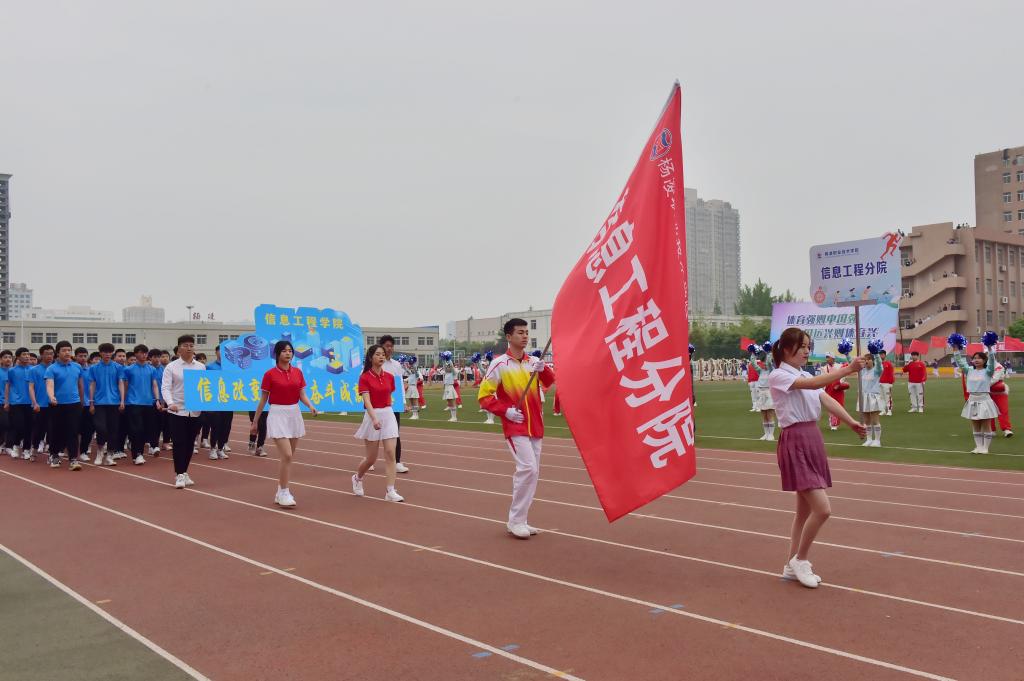 展青春风采,扬运动雄风。4月22日至23日,我校2021年春季田径运动会在南校区体育场举行。学校党委副书记、校长王周锁,副校长张迪、祝战斌、胡俊鹏,各学院(部)党总支书记、院长、各处室(中心)负责人以及大一、大二辅导员、学生近万余人参加了开、闭幕式。来自11个学院的400余名运动员参加了28个项目的角逐。