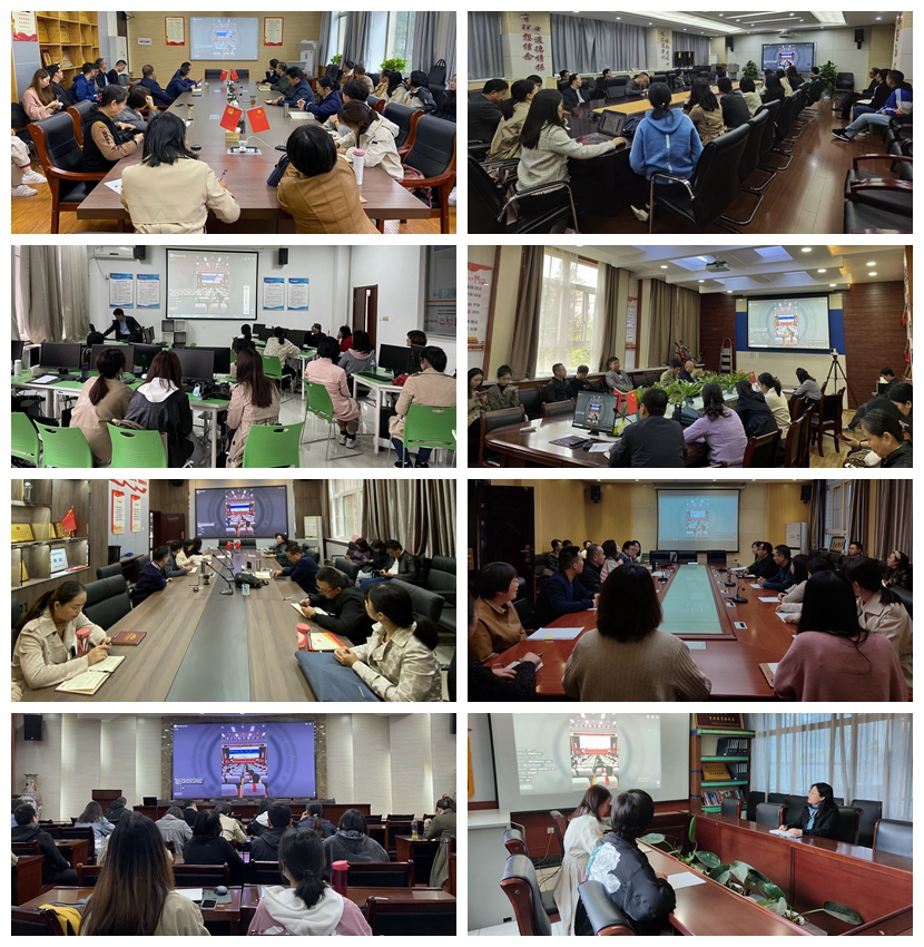 报告会采取网络直播形式进行,其他教职工在各部门(单位)会议室同步观看了大会。