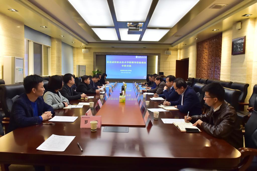 会上,祝战斌介绍了我校产业学院建设、校企合作状况以及对未来发展的规划。王辉简要介绍了咸阳职业技术学院的发展概况和其此次来访的目的。随后,双方就产业学院建设、就业指导、校企合作、产教融合等方面工作进行了深入探讨和经验分享。双方表示,两校要保持良好联系,在学校不同领域的发展中资源共享、共同发展,为高职院校的发展贡献力量。