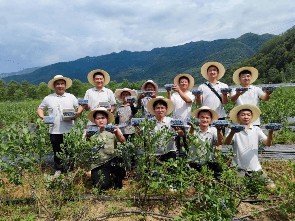 在桃川镇杨下村,团队成员与太白县团委书记胡纬、杨下村驻村第一书记王伟等人举行座谈会,了解太白县乡村振兴、农村精神文明建设等情况。参观了杨下村香包工厂、杨下村蓝莓产业基地等特色扶贫产业基地,了解当地集体经济发展模式及产业扶贫发展新动向。当得知当地技术人才紧缺问题时,团队来到正在修建的桃川镇杏园村委会施工现场,结合所学专业技能知识,现场勘测地形、施工放线、配备水泥砂浆、铺设广场路牙石,共完成20余条路牙石铺设。在成员和工人们的辛勤努力下,广场施工进度得以加快,学生专业技能得到夯实。此外,因当地蓝莓基地采摘工人较少,团队成员自愿加入杨下村蓝莓产业基地协助进行蓝莓采摘。炎炎烈日下,大家脚踏泥土、汗洒田间,在知农爱农中寻觅“丰收感”,成员协助果农采摘蓝莓100余斤、分拣打包蓝莓产品30余盒。