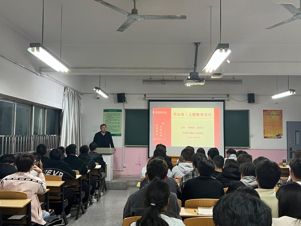 10月22日,交通与测绘工程学院开展劳动育人主题教育活动,副校长张朝晖为学生讲授专题劳动课。