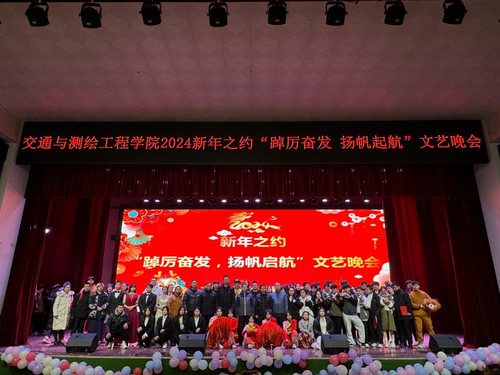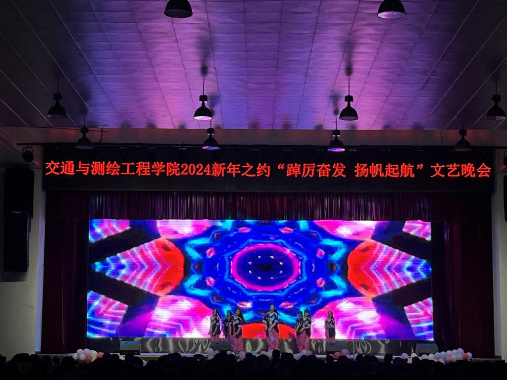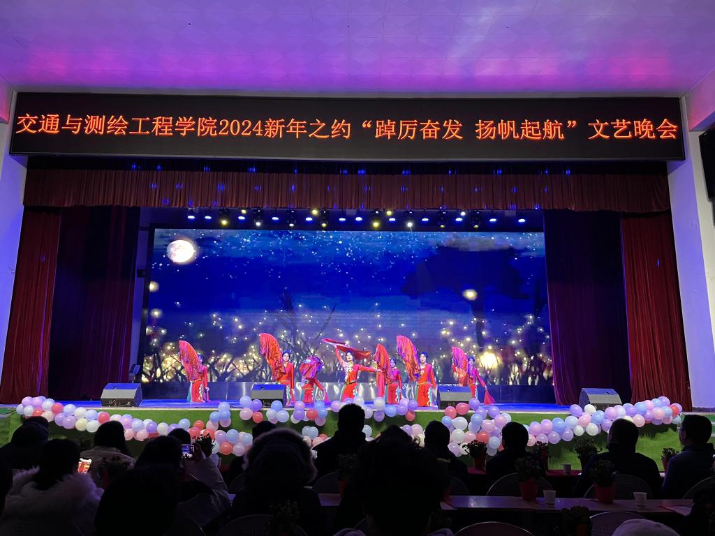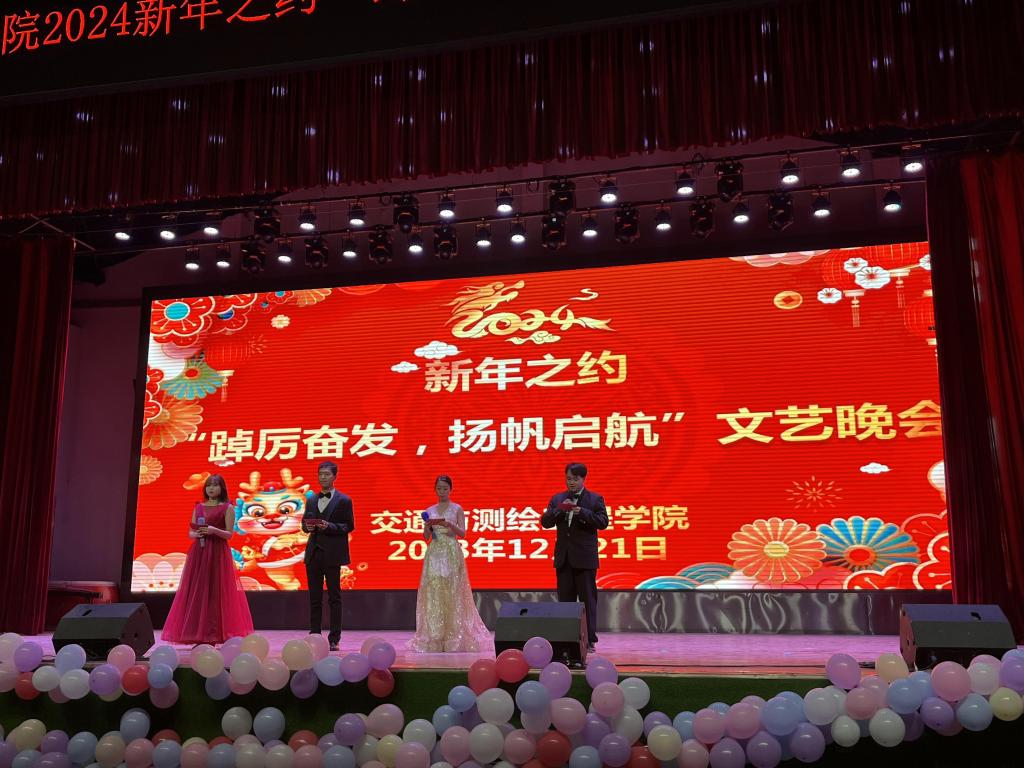 12月21日晚19:00,交通与测绘工程学院以“踔厉奋发,扬帆起航”为主题,在南校区一卡通中心举办2024新年之约文艺晚会。副校长张朝晖到场观看晚会。
