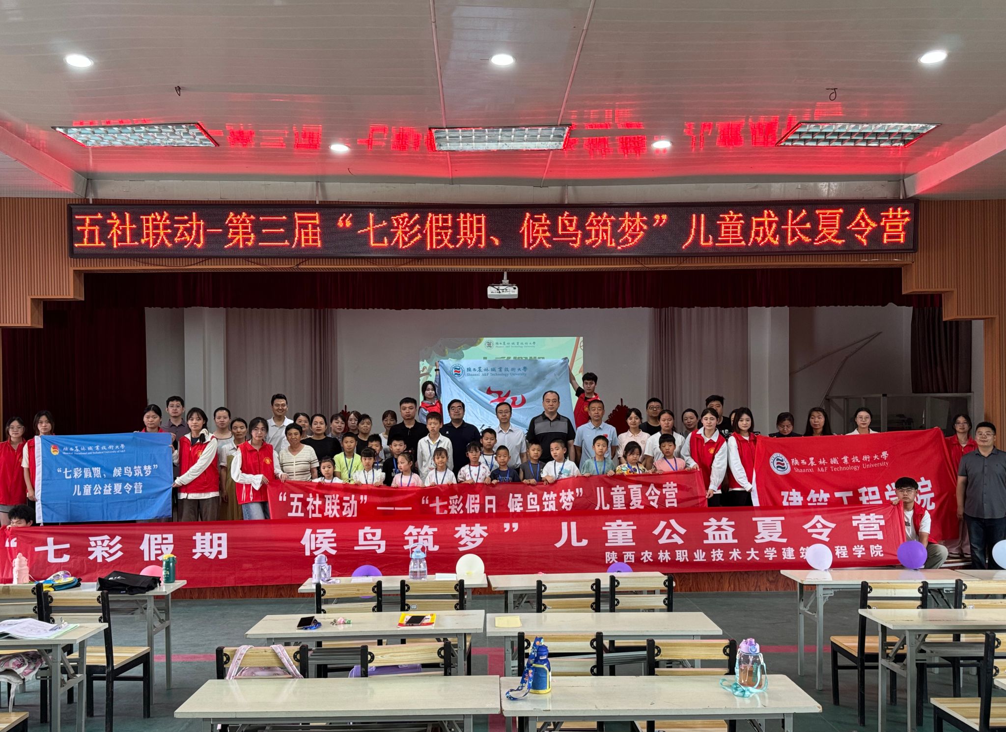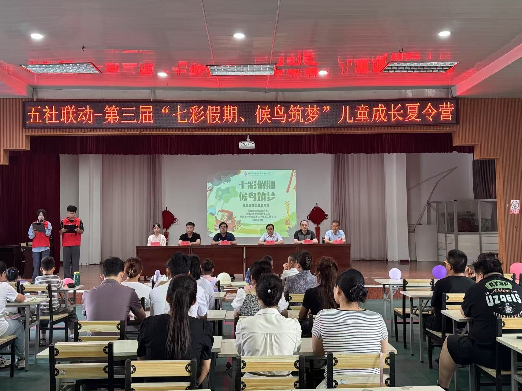 7月6日,由建筑工程学院、共青团杨陵区委员会、杨陵大寨街道梁氏窑社区联合举办的“七彩假期 候鸟筑梦”儿童暑期公益夏令营开营仪式在梁氏窑社区新时代文明实践站举行。共青团杨陵区委员会书记袁博,建筑工程学院、校团委负责人,建筑工程学院团委书记、学工办主任,马克思主义学院教师代表,大寨街道梁氏窑社区党委书记徐晨、杨陵小学大队辅导员周亚玲、辅导员、社区工作人员、社区儿童及家长70余人参加。