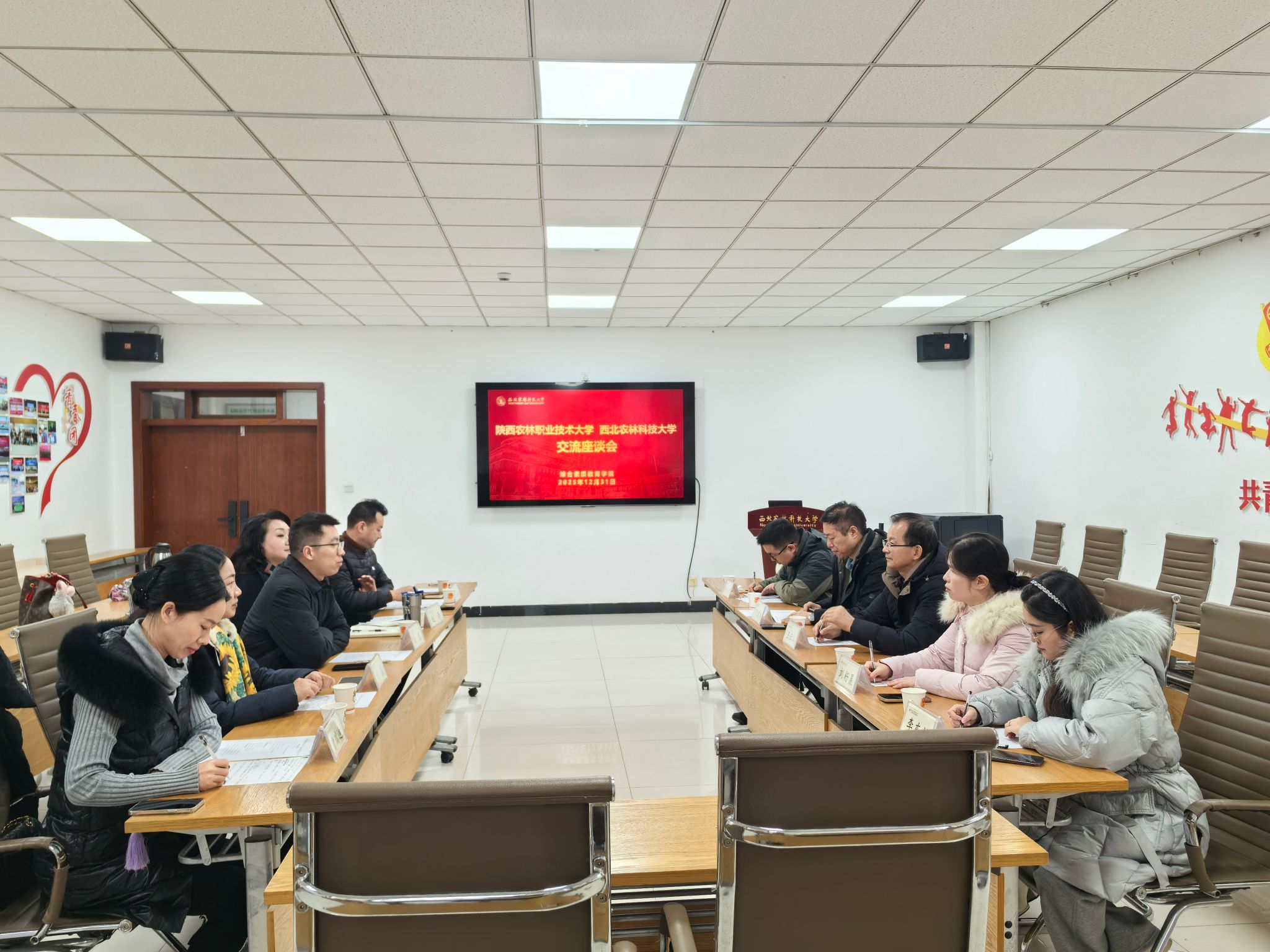 为学习高水平院校美育工作先进经验,12月31日,文理学院负责人一行5人赴西北农林科技大学综合素质教育学院开展美育工作专题调研。西北农林科技大学团委书记、综合素质教育学院副院长陈龙,以及综合素质教育学院专任教师参加调研。